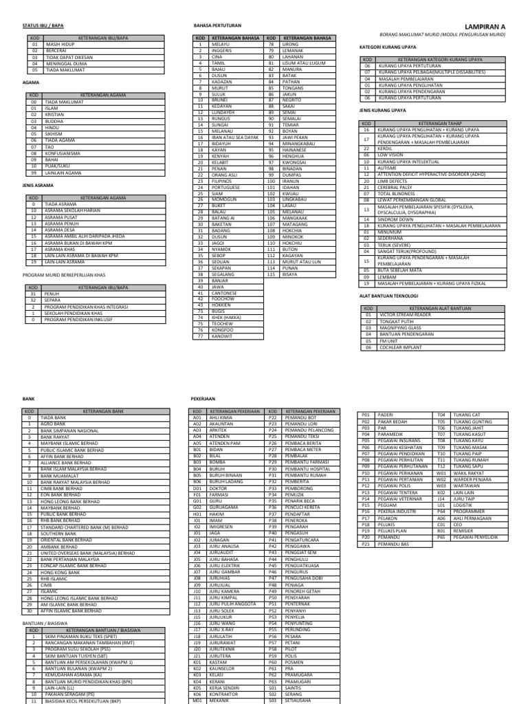 Untuk pengetahuan ibu bapa di luar sana, sistem permohonan pendaftaran secara dalam online untuk kemasukan murid ke tahun satu sekolah rendah kerajaan (kementerian pendidikan malaysia) bagi seluruh negeri di semenanjung malaysia. Berikut merupakan borang maklumat murid yang telah dihasilkan berdasarkan aplikasi pangkalan data murid apdm. Borang maklumat murid yang boleh diedarkan kepada murid dan dilengkapkan untuk dikemaskini di apdm. Borang maklumat murid (download pdf). Borang maklumat murid modul pengurusan murid, sistem pengurusan pengurusan sekola h kementerian pendidikan adakah terdapat ahli keluarga yang mengalami masalah sama? Saya sudah convertkan kepada excel. Borang kosong ini boleh di download dengan klik download borang apdm murid. Lampiran a borang maklumat murid, sistem pengurusan sekolah kementerian pendidikan malaysia untuk rujukan ibu bapa semasa mengisi borang maklumat murid. (a) nama dan alamat syarikat : Boleh diubah suai mengikut kehendak sekolah tanpa menggugurkan maklumat yang diperlukan. Lampiran a borang maklumat murid. Sheet1 lampiran f borang unjuran enrolmen murid nama sekolah : Download lagu borang maklumat diri mp3 dapat kamu download secara gratis di metrolagu.