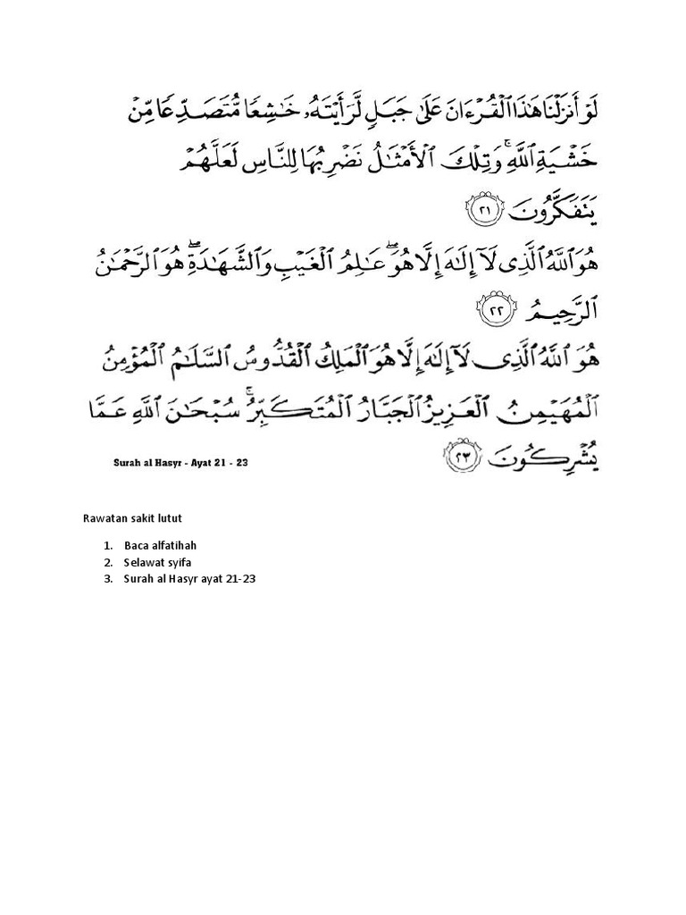 Surah Al Hasyr Ayat 21 Hingga 24 from risalahmuslim.id Terms in this set (14). 11 khasiat surat al fatihah untuk rejeki. Situs mudah dibaca, cepat dibuka & hemat kuota. Surat al hasyr ayat 21 mp3 & mp4. Obat dari segala macam penyakit kecuali kematian rasulullah saw bersabda : 7 years ago7 years ago. Yusuf elzaidan 3 months ago. From the album ayat ruqyah & surah yasin, ikhtiar ruqyah, amalan pelindung diri & keluarga.