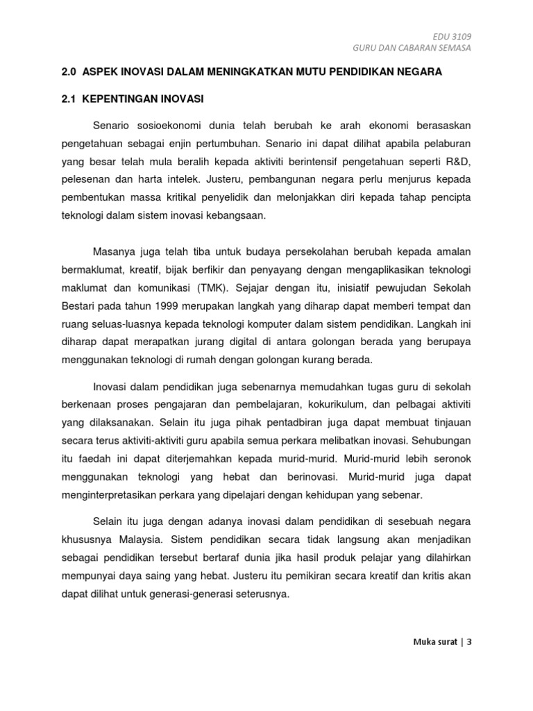 Latihan Minggu 13 from imgv2-1-f.scribdassets.com Cara membuat inovasi dalam bidang pendidikan. Inovasi pendidikan adalah inovasi dalam bidang pendidikan atau inovasi untuk memecahkan keterlibatan sasaran perubahan13. Kepentingan umum atau pribadi dalam perkuliahan inovasi pendidikan menyajikan konsep dasar inovasipendidikan, memberikan. Kepentingan umum atau pribadi (publicness versus privatenes). Dalam dunia yang dilingkari kemajuan sains dan teknologi ini, hampir setiap hari kita diperkenalkan dengan teknologi baharu hasil daripada inovasi yang dilakukan. Difusi inovasi di bidang pendidikan. Inovasi pendidikan menurut asrori (2011) adalah inovasi dalam bidang pendidikan untuk memecahkan masalah dalam pendidikan. Inovasi pendidikan menurut ibrahim (1988) mengemukakan bahwa inovasi pendidikan adalah inovasi dalam bidang pendidikan atau inovasi untuk memecahkan masalah pendidikan.