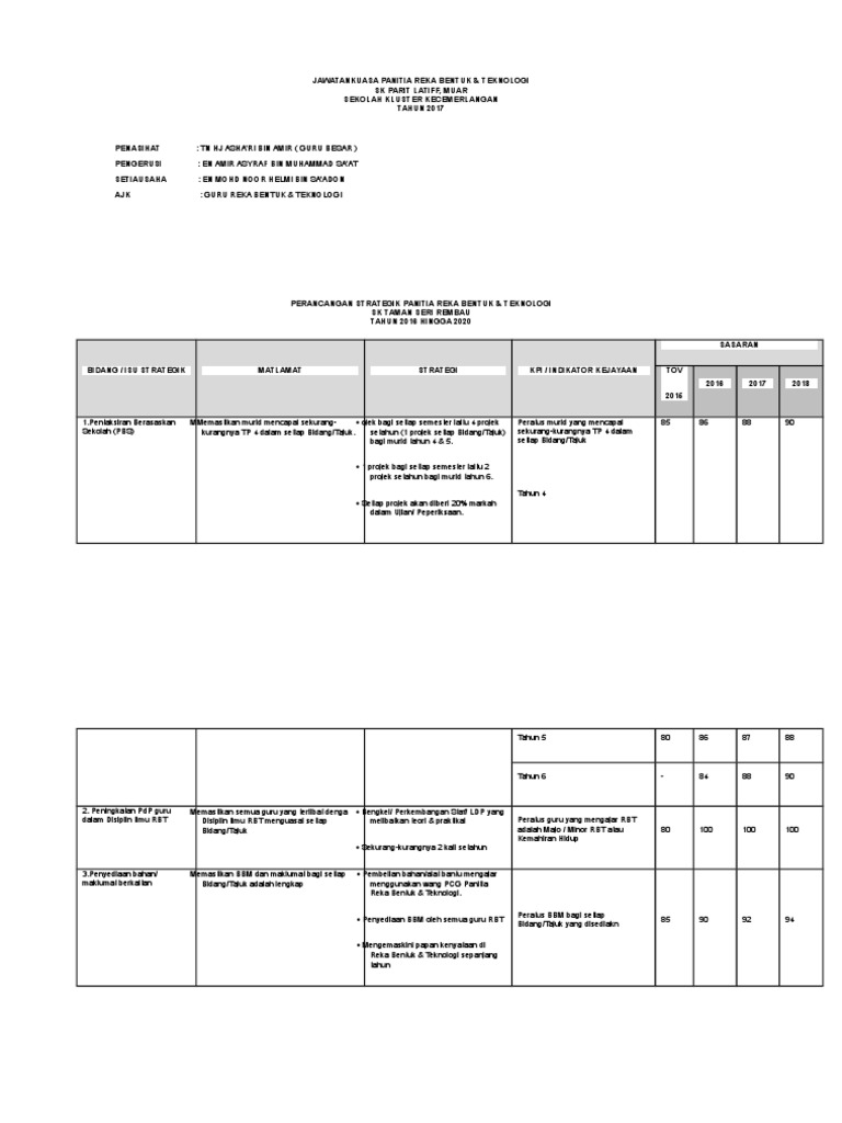 Taklimat umum kurikulum standard prasekolah kebangsaan (semakan 2017) kurikulum standard sekolah rendah (semakan 2017) kurikulum standard sekolah menengah. Contoh perancangan strategik panitia pendidikan islamfull description. Perancangan strategik membantu menentukan matlamat dan strategi untuk mencapai matlamat ini dan oleh itu merupakan bahagian penting dalam keusahawanan. Jawatankuasa panitia reka bentuk & teknologi sk parit latiff, muar sekolah kluster. Penetapan strategi mengikut isu, matlamat, objektif, kpi dan sasaran bidang :